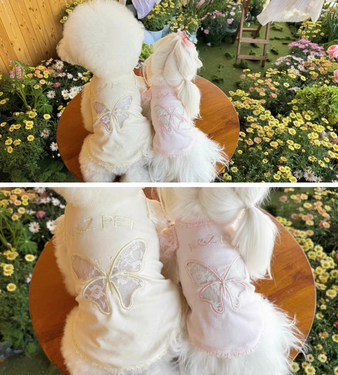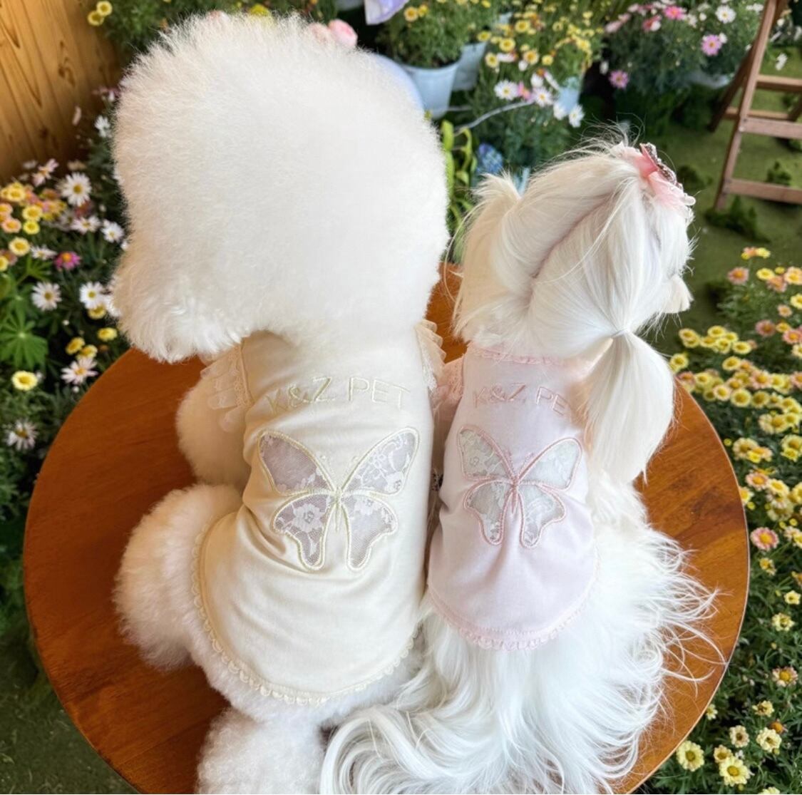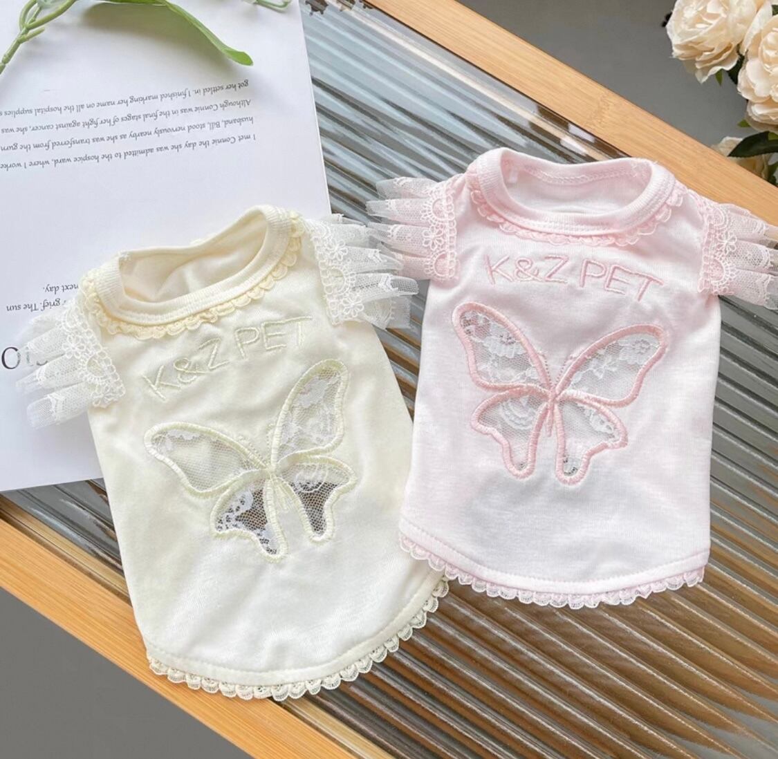 背中に少しかすんだメッシュレースの蝶のカットアウトが刺繍されています໒꒱