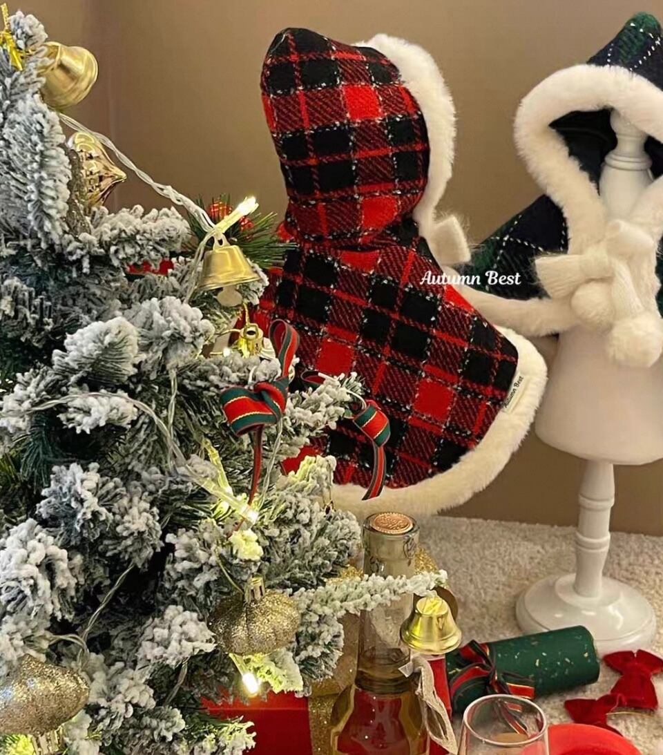ふんわりあたたかなクリスマスチェック柄のリバーシブルペットマント♡♡