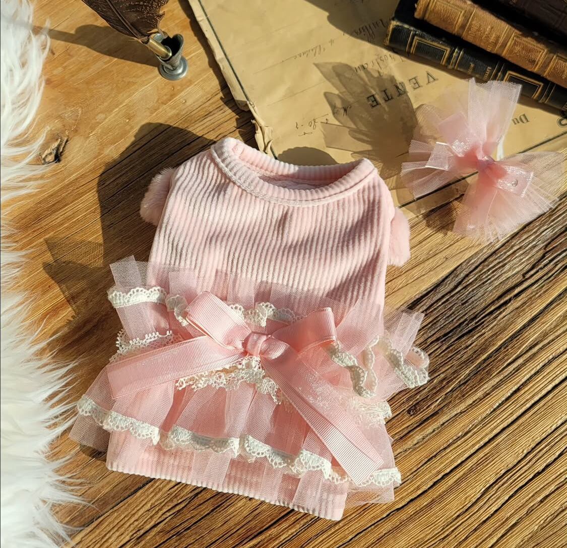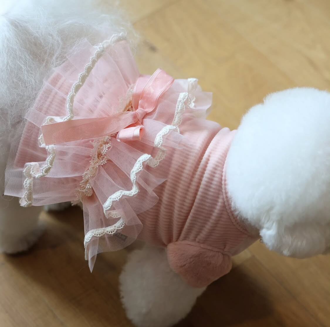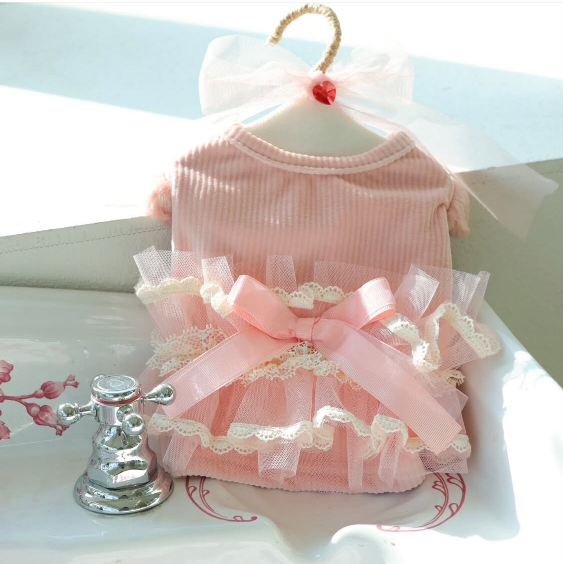 一の裏地♡ストレッチがきいてアクティビティにもオススメ♡チャフユリ、レース、リボンがポイントの素敵な花柄Tシャツ໒꒱