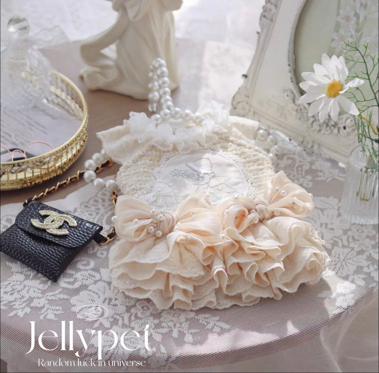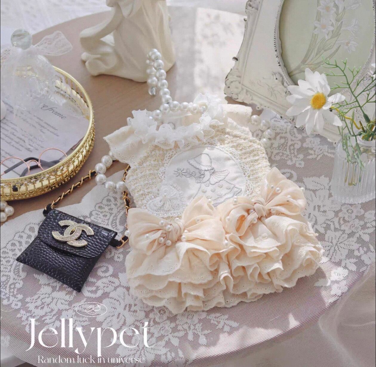 使用しており、レースフリルが施されているため、