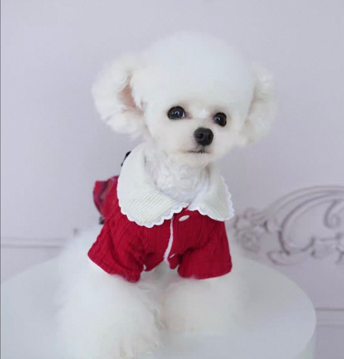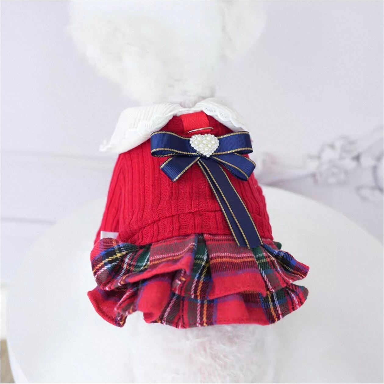 存在感のある大きめのリボンやチェックのスカート♪襟元も可愛くて お散歩やお出掛けで目立ちますよ♡⃛