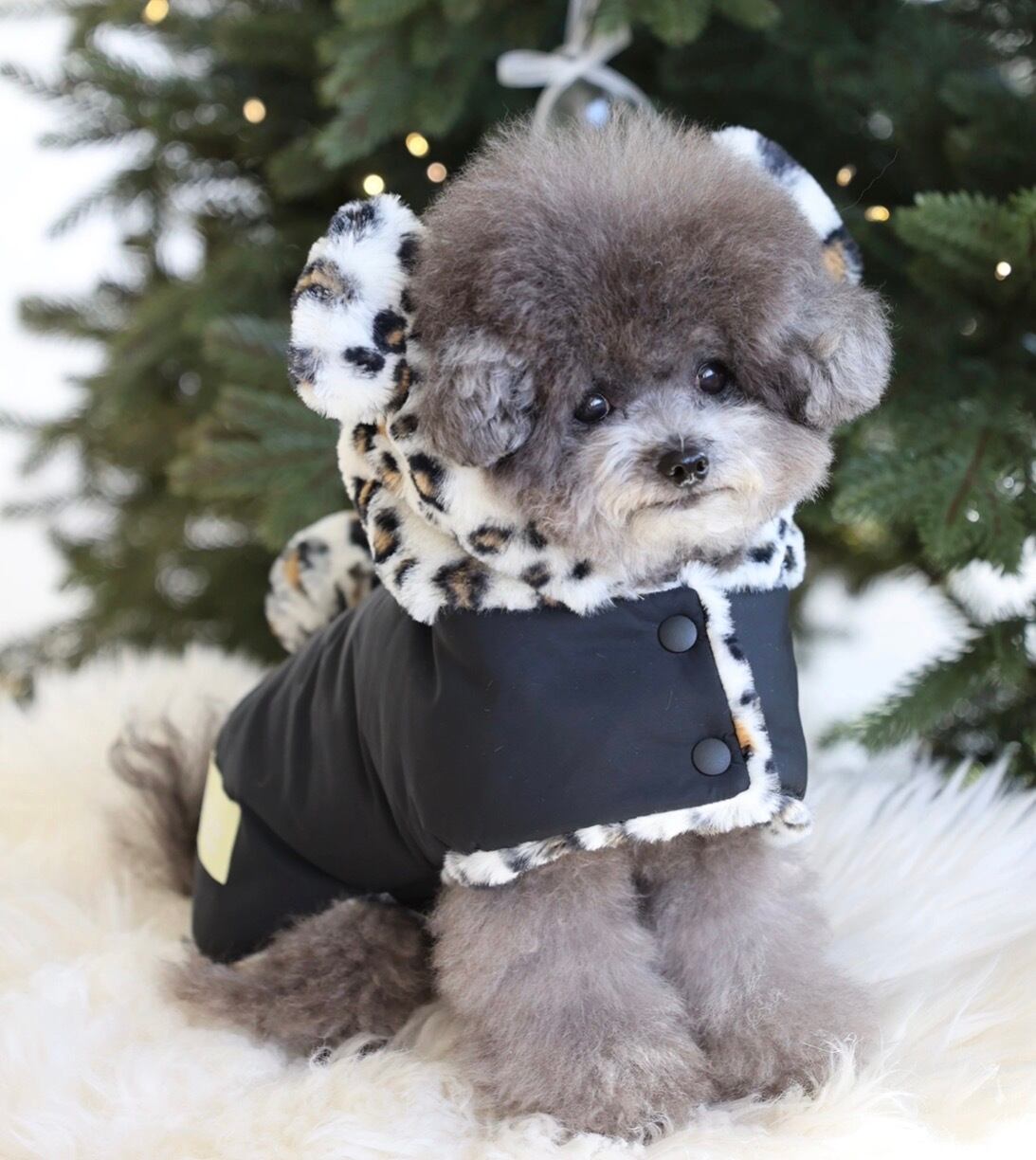 表地とフードのヒョウ柄ファーが柔らかくて
