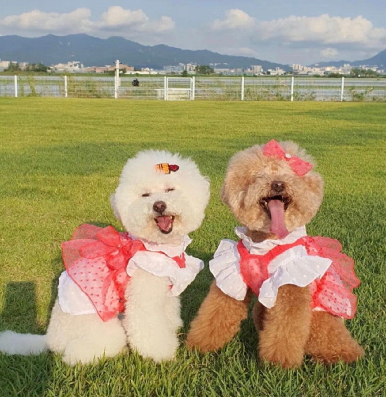 お揃いのヘアリボンを付けると更に可愛くなって