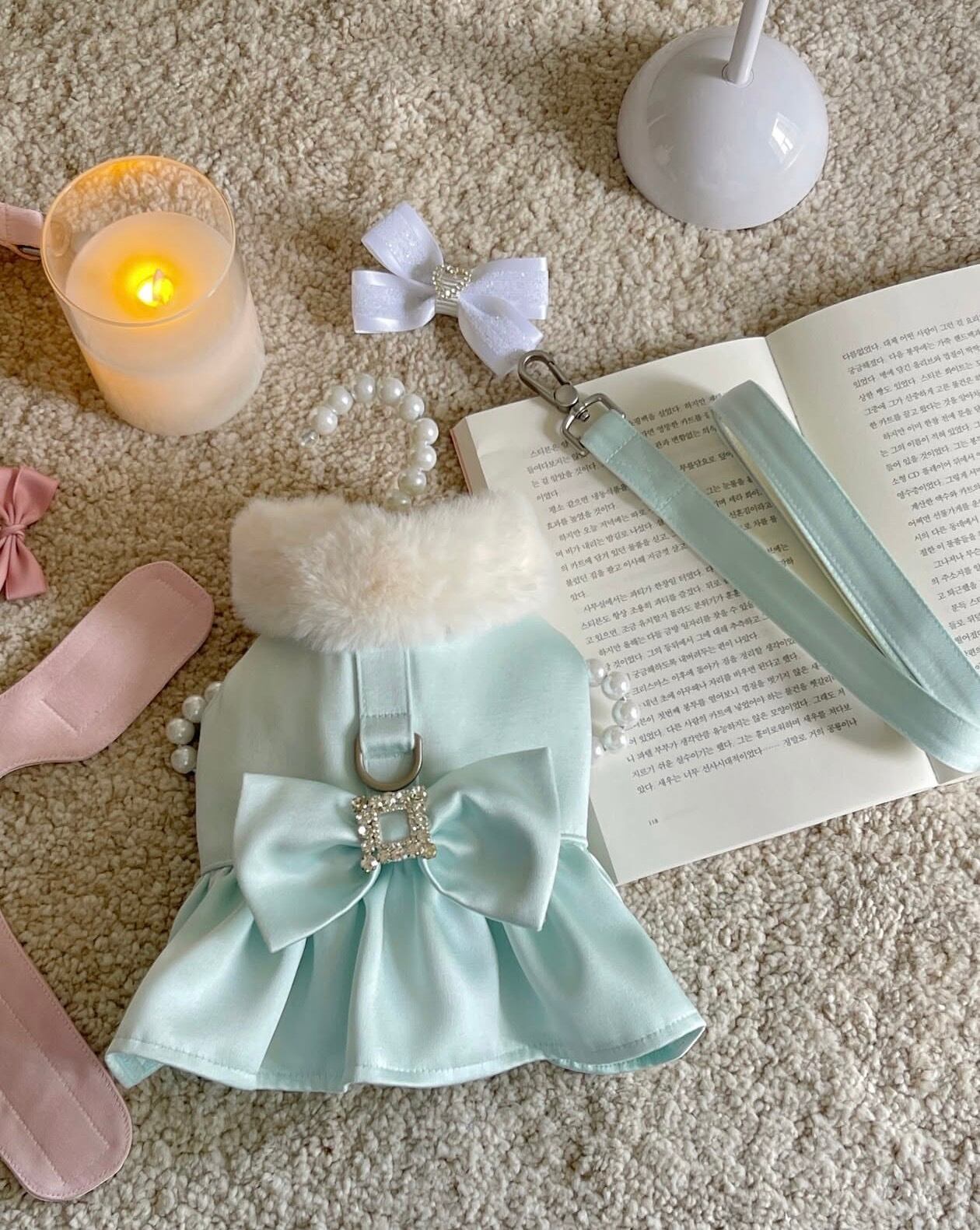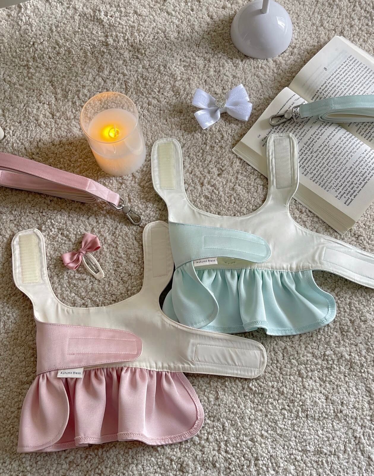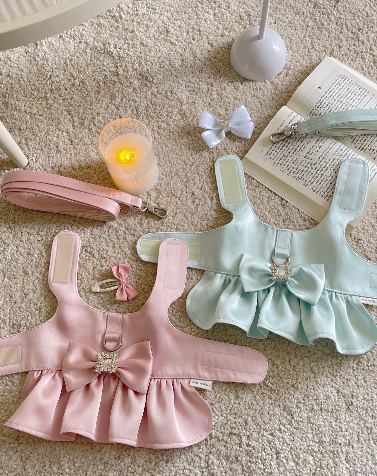 きらりと輝くビジューバックルがアクセントとなり、特別な日のお出かけや撮影シーンにぴったりの一着です♡♡背中にはDリング付きハーネス仕様を採用し、ワンピースとしての美しさと、お散歩時の実用性を兼ね備えました。