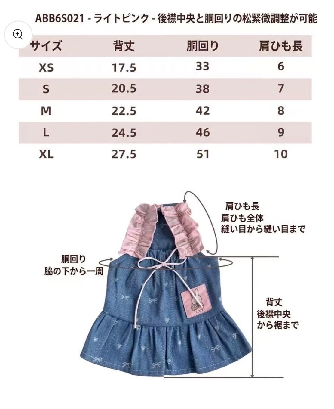 お写真の1番最後にサイズ表を載せています。