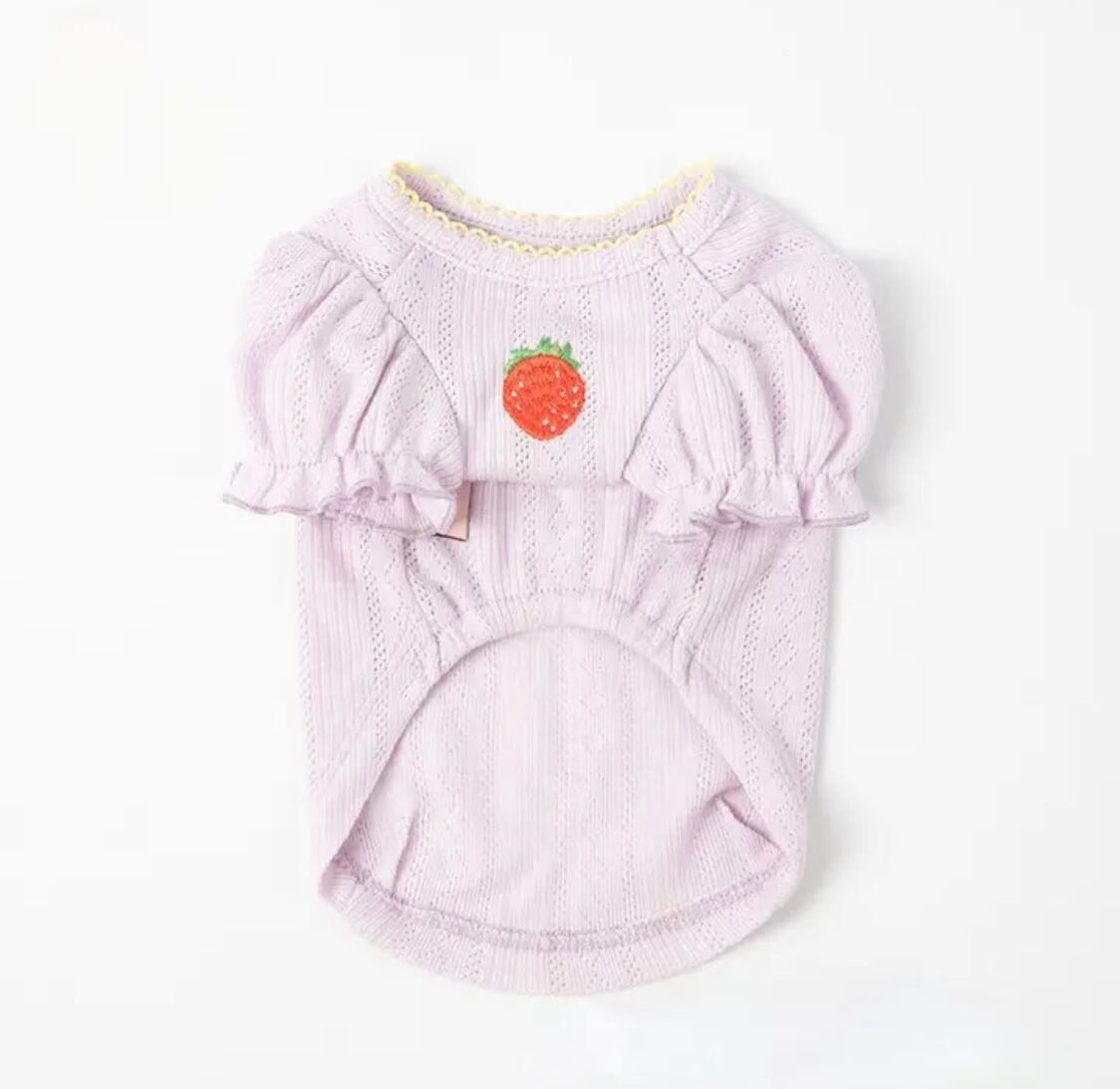 イチゴの刺繍が可愛い半袖Tシャツ 収縮性があり柔らかい生地で、 ワンちゃんも気持ちよく着られます。 男の子にも女の子にもオススメの商品です♡ [ COLOR ] ホワイト、イエロー、パープル [ SIZE ] XS/ S/ M/L/ XL/ XXL 参考サイズ XS バスト 30cm着丈21cm S バスト 33cm着丈 23cm M バスト 36cm着丈 26cm L バスト 39cm着丈 28cm XL バスト 42cm着丈 30cm XXL バスト 46cm着丈 32cm ご購入前に必ずご利用規約をお読みください。 ↓↓ https://anerarei.official.ec/about
