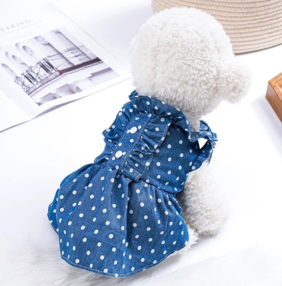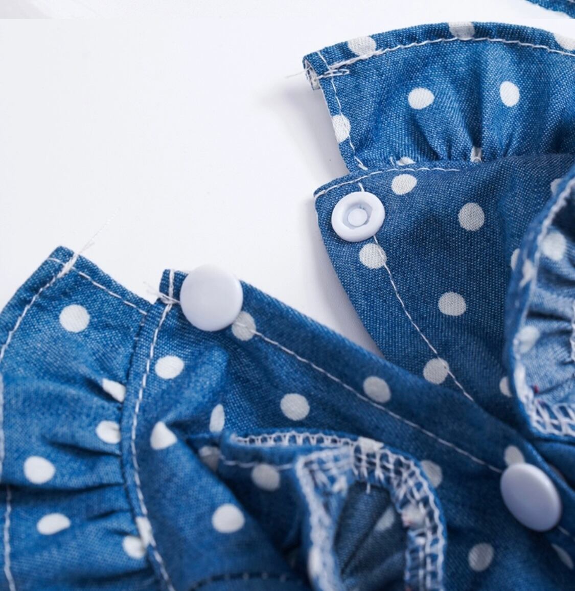 デニム風な色合いとドット柄が可愛い