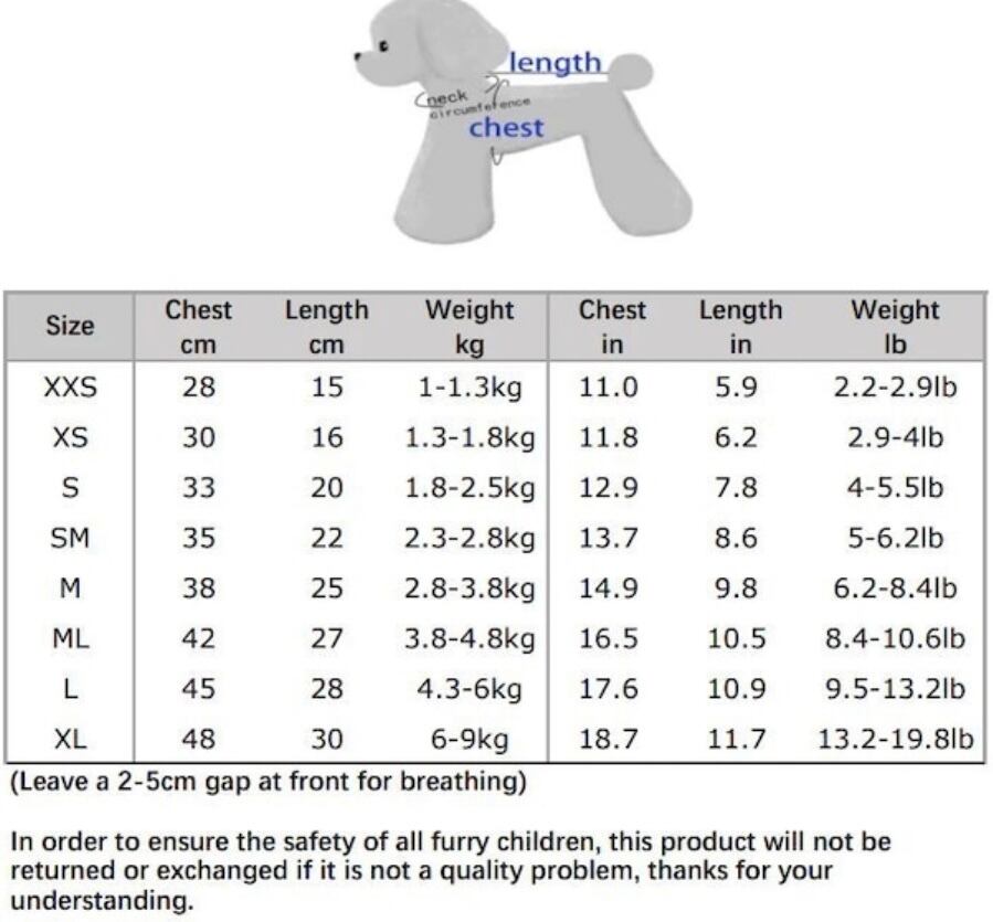 XXS 胸囲(約)28cm 着丈(約)15cm