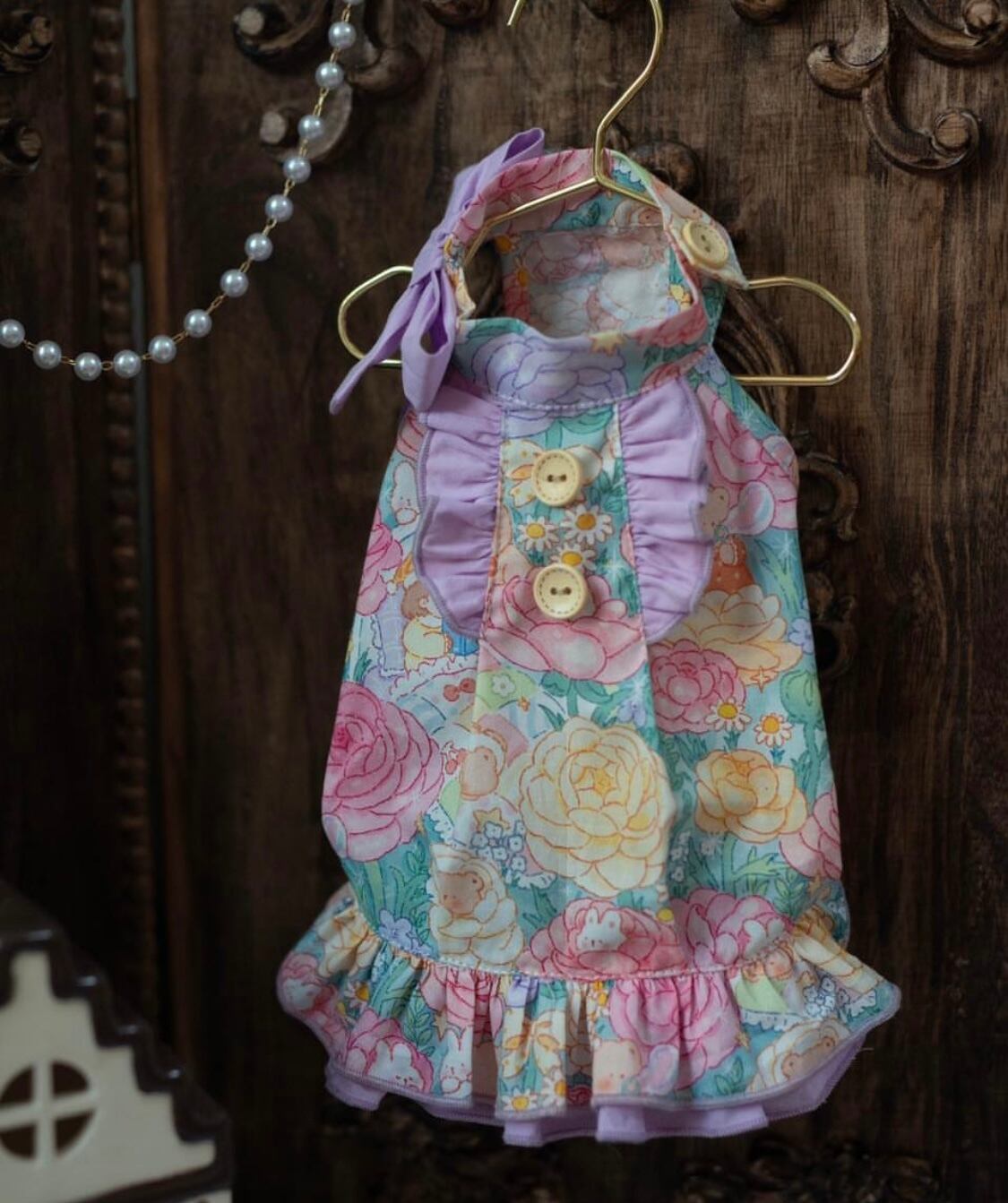 ✿牡丹柄ボタン襟ドレス✿