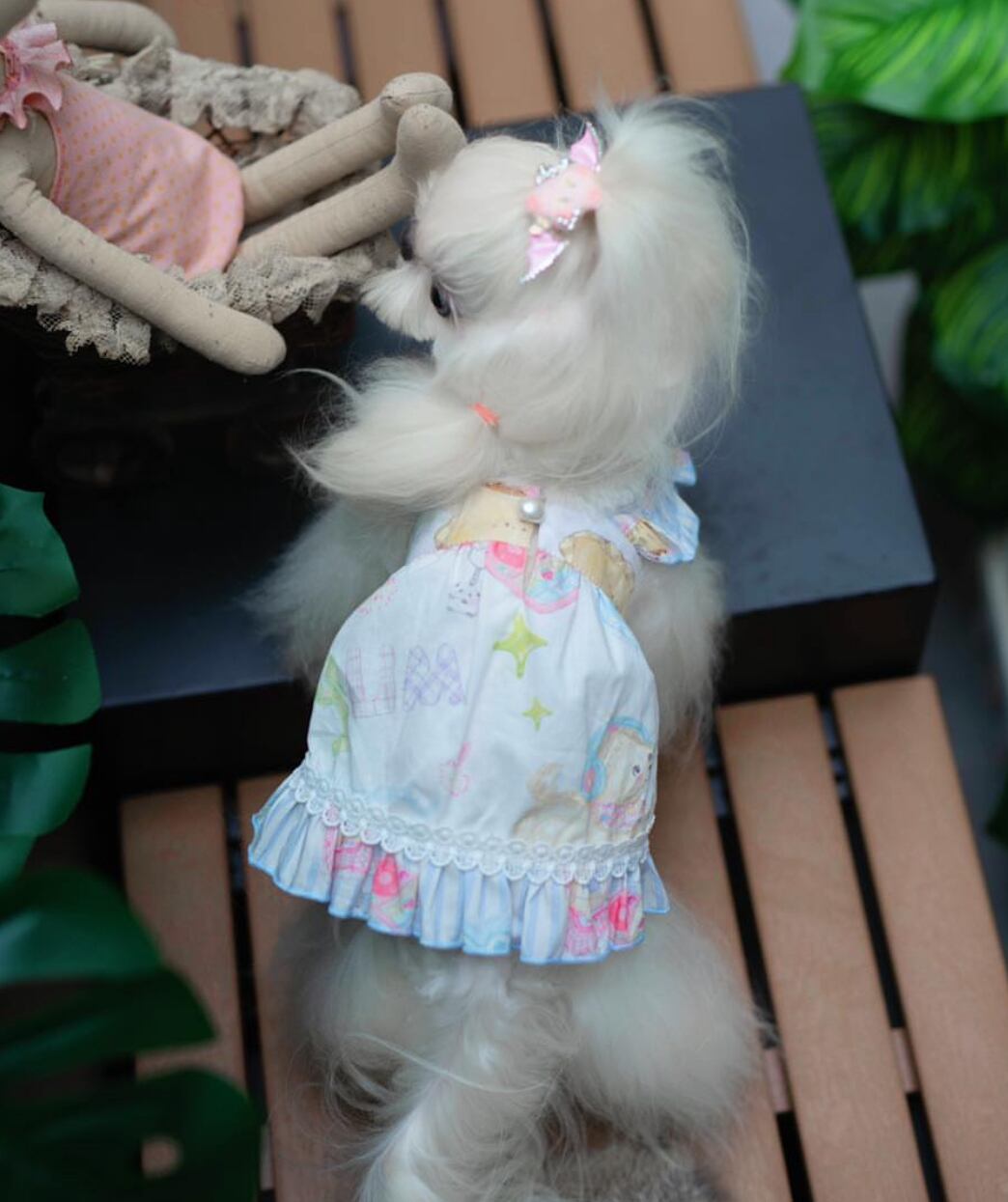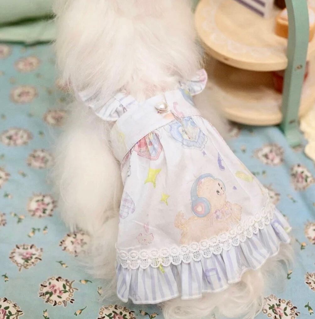 愛犬の体型にぴったりフィットするように設計されたこの軽量ドレスは、魅力的なAラインのシルエットが特徴です♡ウォッシュ加工を施したコットン100%を使用しており、通気性が良く快適です♪♪後ろには光沢のあるパールボタンが1つ付いており、ゴムループが付いているので簡単に留めることができます。フロントには調節可能な紐が付いており、必要に応じてストラップの長さをカスタマイズできます。繊細なパールのペンダントが付いており、エレガントさを更にプラスしています