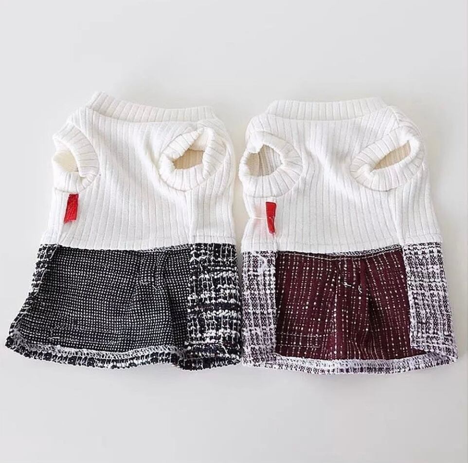 リブニットとツイードの切り替えワンピース♡♡