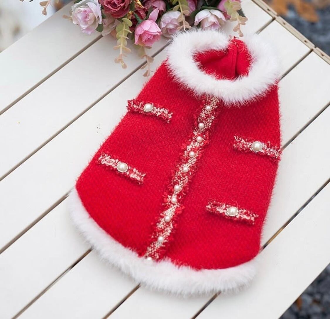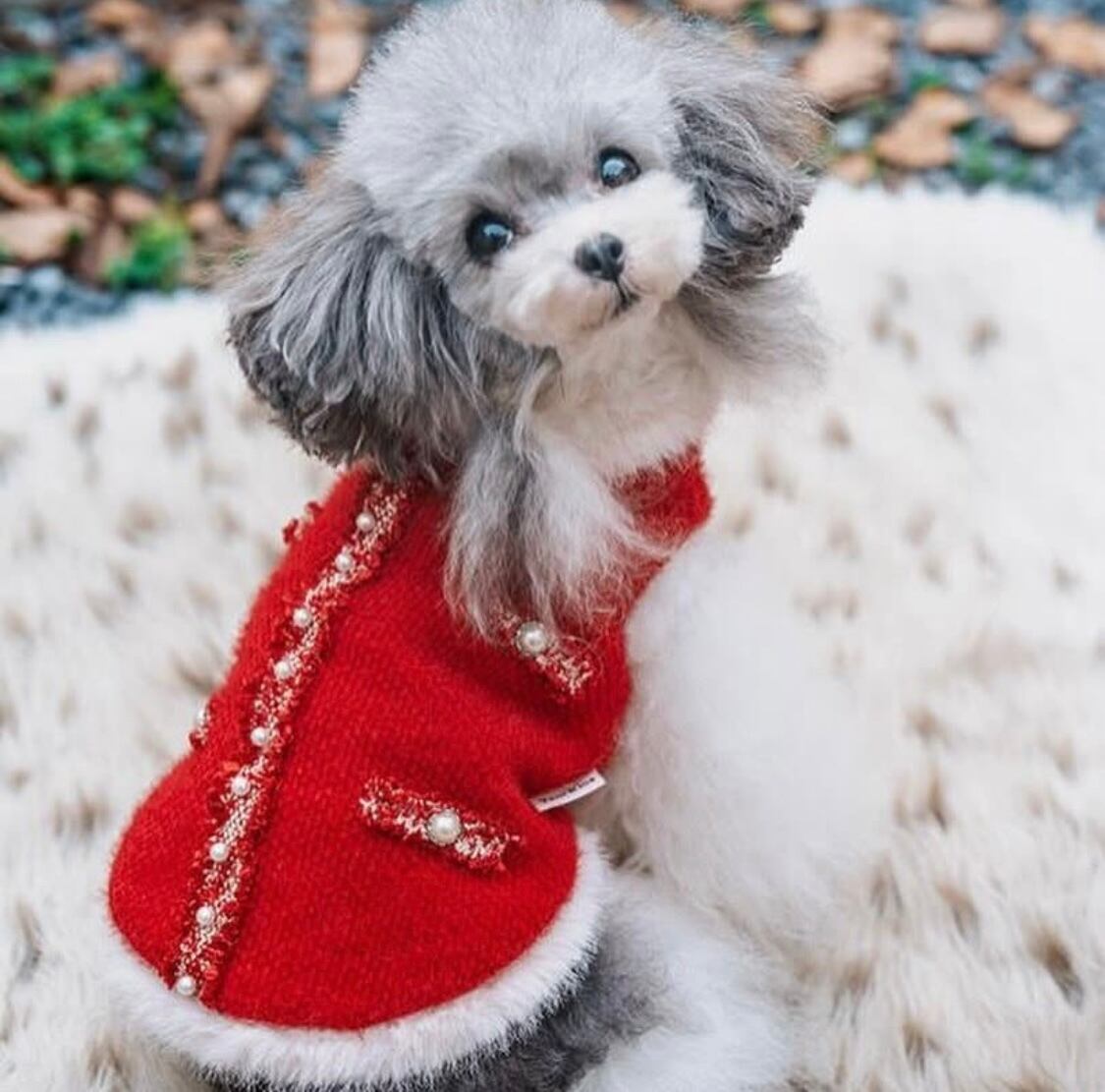 愛犬ちゃんのおしゃれにホリデーシーズンの魔法をプラスしませんか?このコレクションは、プリンセス風の可愛いカメリア付きのワンピースと、クラシックなベストの2つのスタイルをご用意。華やかな赤いツイードと柔らかい白いファーで、