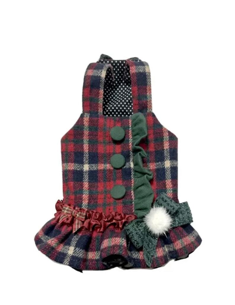 赤チェック ウールワンピース